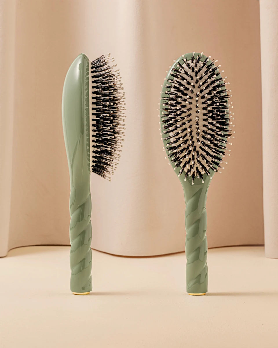 Its soft cushion and rounded bristle tips make the N°03 ideal for sensitive scalps, fine to medium hair, or anyone who prefers a calming, low-tension approach to daily grooming. The N°03 transforms simple hair brushing into a luxurious self-care ritual, encouraging slow, mindful strokes that relax the scalp and elevate your everyday routine.